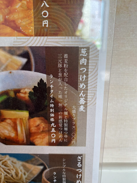 - 葱肉つけめん蕎麦:950円