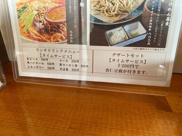 ランチのタイムサービスで、食後に杏仁豆腐+200円と、食前に角ハイボール550円をお願いしました。