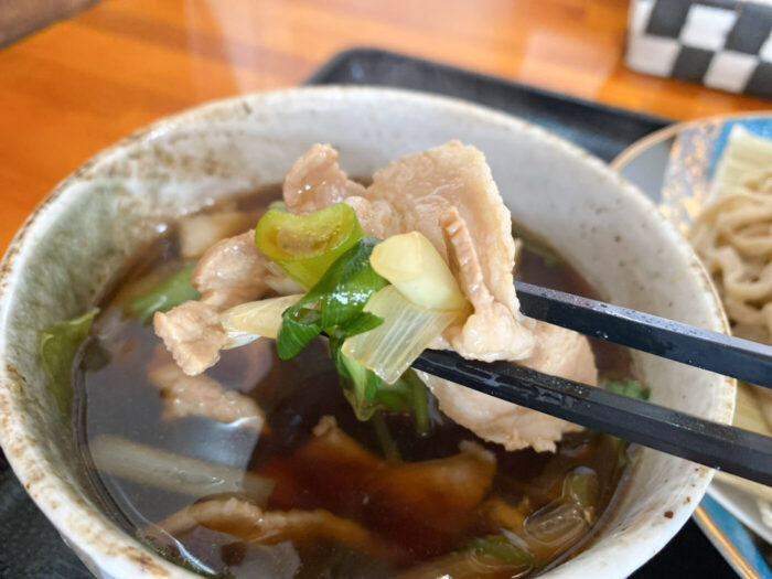 甘めの汁に、葱と豚の旨味が加わって、いいつけ汁になっていますね。