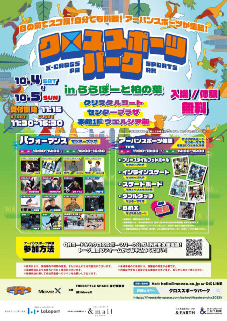 10/4(土)5(日)ららぽーと柏の葉にて「クロススポーツパーク」が開催、目の前でスゴ技!自分でも挑戦!