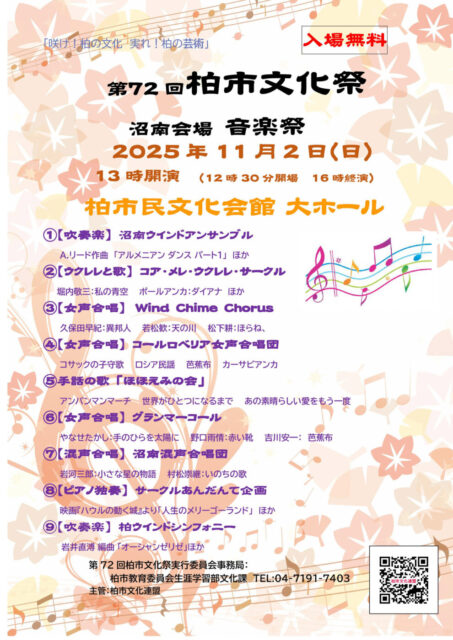 11/2(日)「第72回柏市文化祭 沼南会場 音楽祭」柏市民文化会館で開催