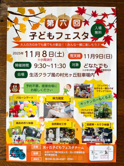 11/8(土)生活クラブ風の村 光ヶ丘にて「第6回 子どもフェスタ」が開催されます。