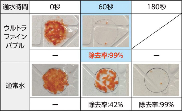 だから、普通の泡とはちがって、水の中にずっと溶け込んでるみたいに長くとどまってくれるのです。