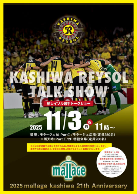 11/3(月)モラージュ柏で「柏レイソルスペシャルトークショー」開催!憧れの選手が登場する観覧無料イベント