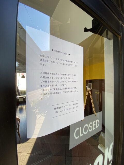 ホットサンド&カフェ専門店「BUNK SANDWICHES 柏の葉キャンパス店」が当面の間休業中