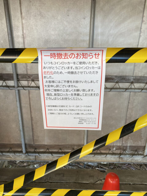 告知では「現在、新型ロッカーを準備しておりますので今しばらくお待ちください」とされており、完全撤去ではなく機器の更新であることが示されています。