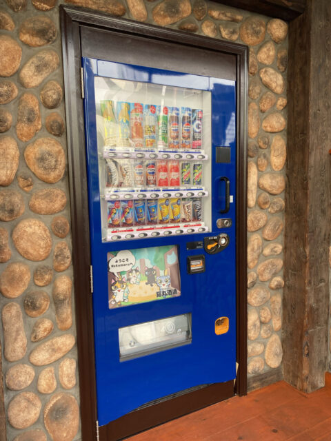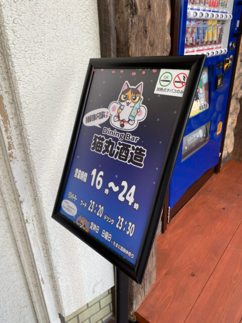 一見すると普通の飲み物の自販機に見えますが、実はこれが秘密の扉となっており、猫のマークが描かれた看板と共に店舗への入口となっています。