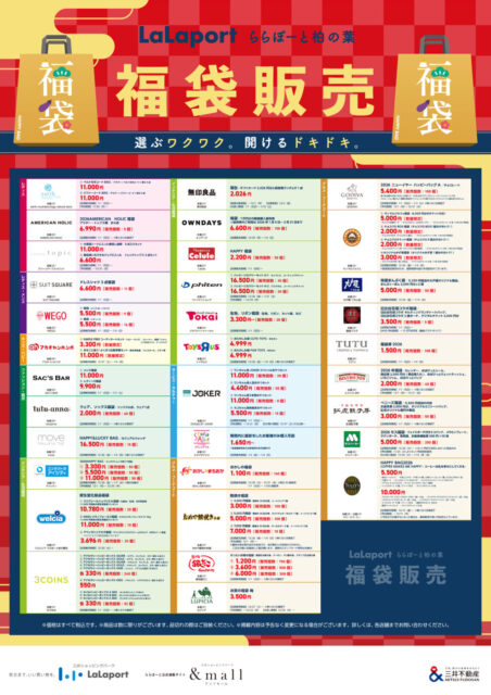 ららぽーと柏の葉、2026年福袋販売!年末から予約や販売が始まっているお店もあるので要チェック