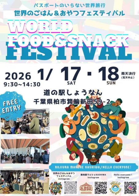 1/17(土)18(日)道の駅しょうなんにて「世界のごはん&おやつフェスティバル」が開催されます。