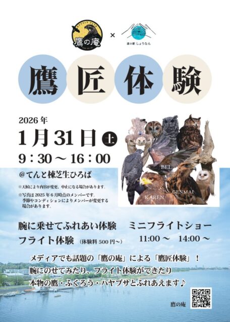 道の駅しょうなんにて、2026年1月31日(日)に「鷹匠体験」が開催されます。