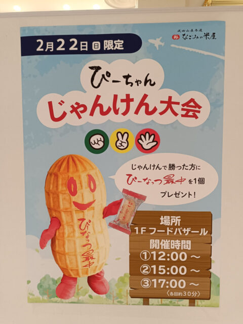 - 2月22日(日)「ぴーちゃんじゃんけん大会」 – マスコットキャラクター「ぴーちゃん」とのじゃんけん大会(12時・15時・17時の3回開催)