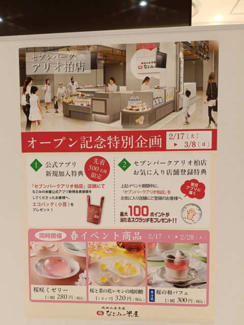 2026年2月17日(火)、セブンパークアリオ柏1階に「成田山表参道 なごみの米屋」がオープンします。