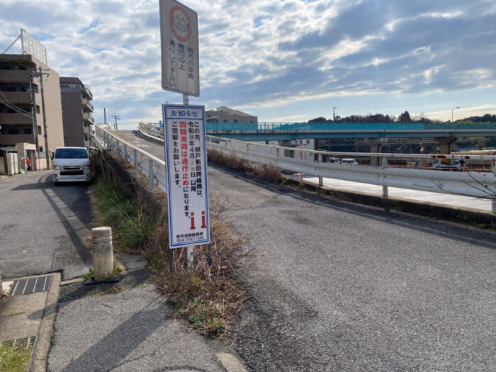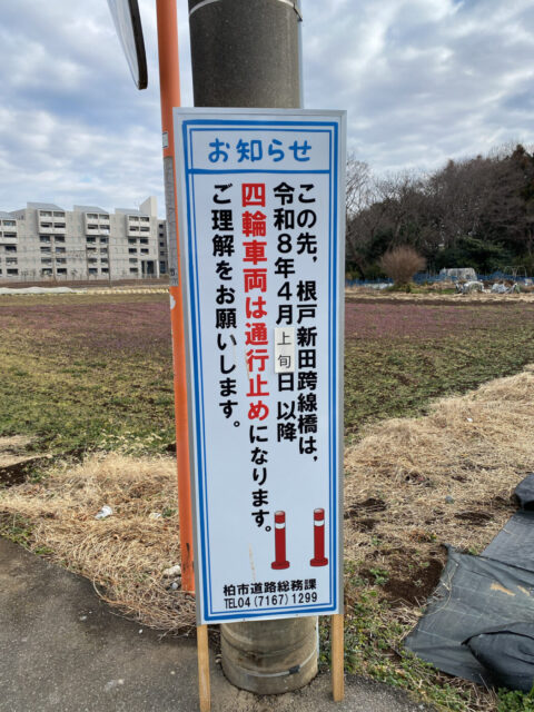北柏駅東側の「根戸新田跨線橋」が4月上旬から四輪車通行禁止へ、アクロスプラザ北柏への通行増加を懸念か