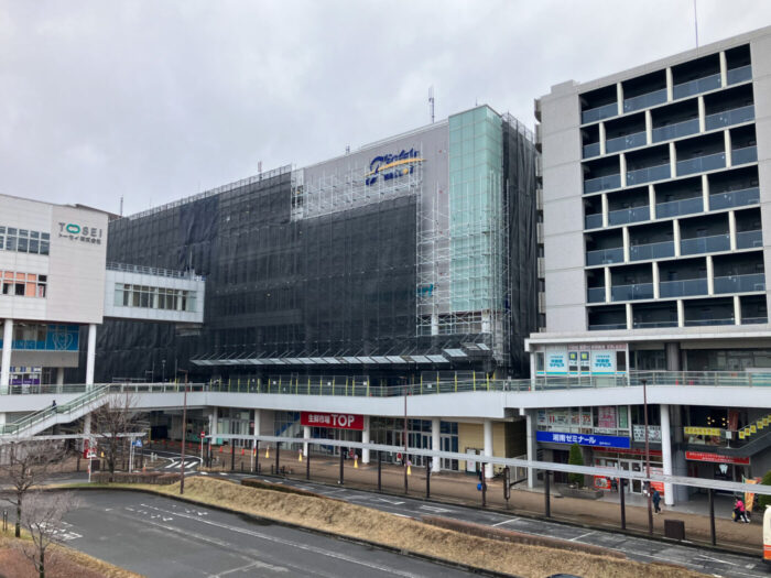 南柏駅東口前の「フィールズ南柏モールII」に足場がかかる、リニューアル工事が本格化