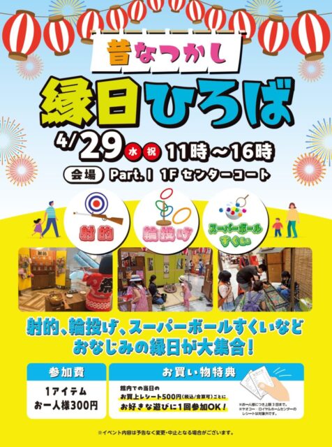 4/29(水)モラージュ柏で「昔なつかし 縁日ひろば」が開催、射的、輪投げ、スーパーボールすくいなど